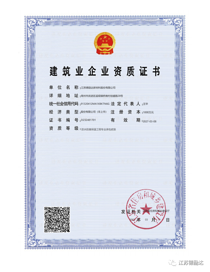 【江苏英国上市公司365】获防水防腐保温工程专业